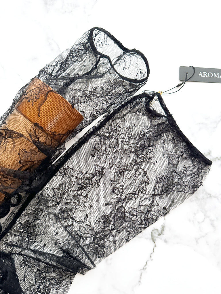 お肌を透かせる繊細なブラックレースの美しさにうっとり。