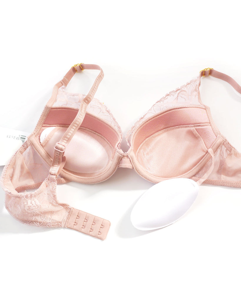 こちらは繊細なリバーレースが美しくバストを包む、Wパテットブラ