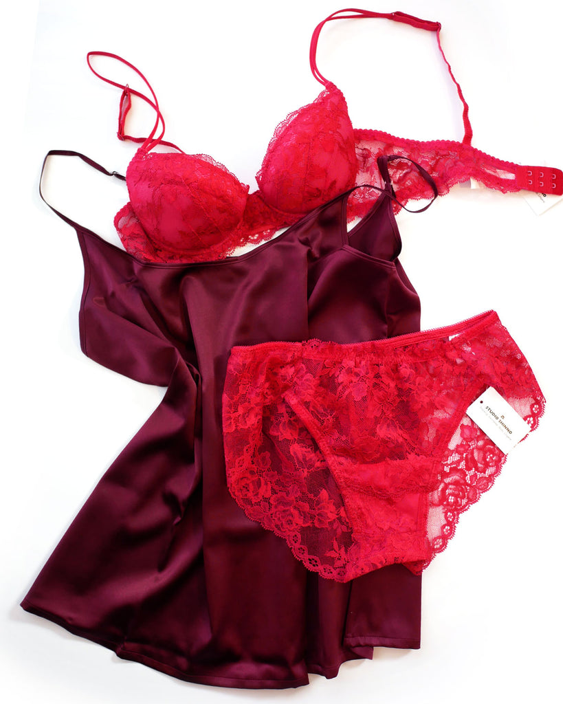 上質なレースと、イタリア生産ならではのミニマルなカッティングが美しいお品。