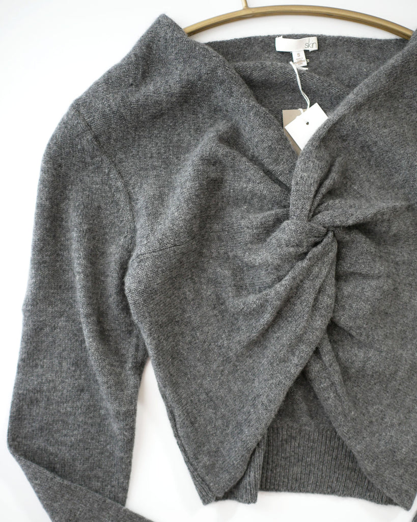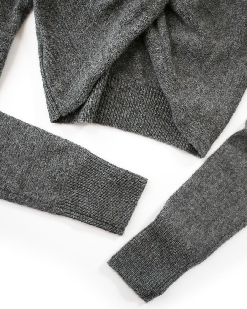 ワードローブに合わせやすく、捻りが効いたデザインもたのしい一枚。