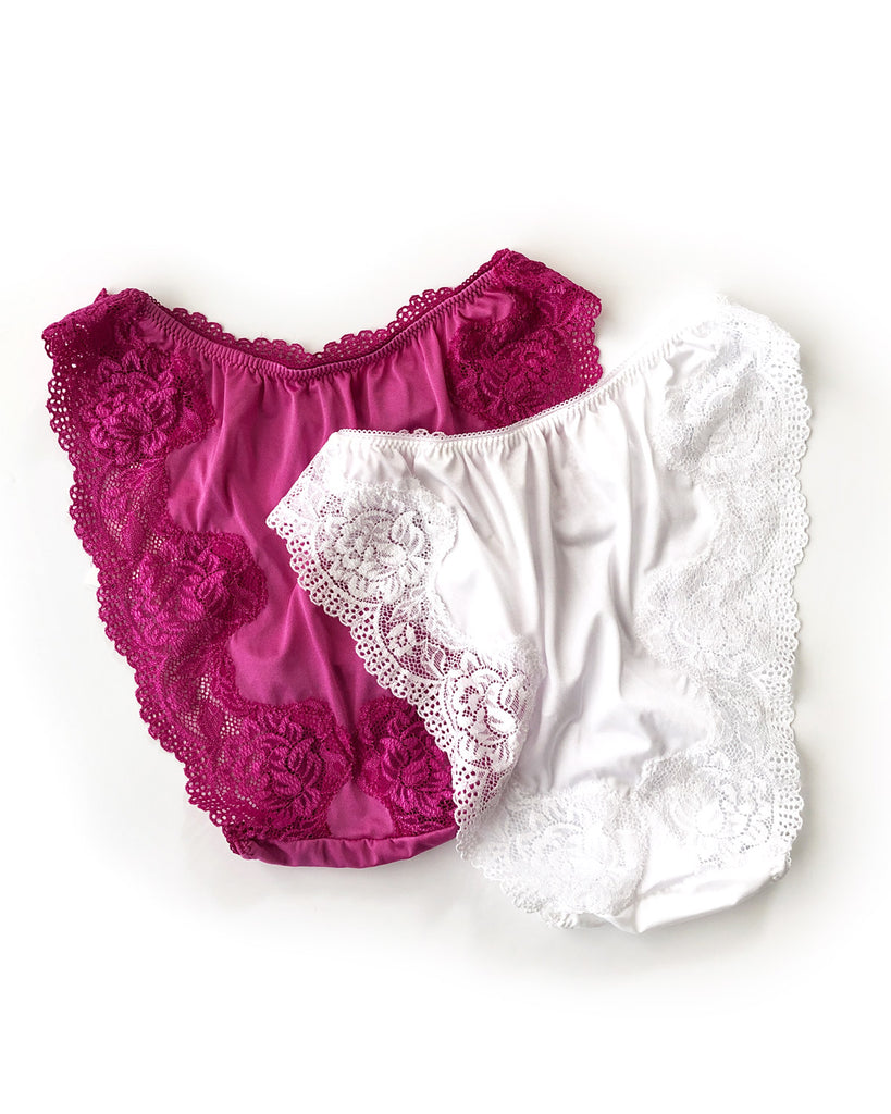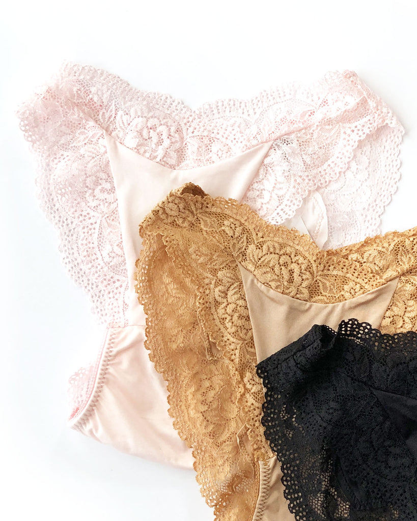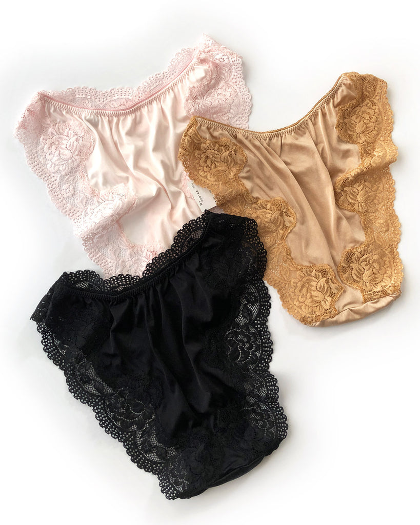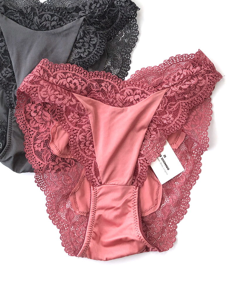 のびのよいストレッチ素材をレースで縁取ったショーツ。