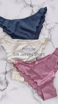 シルクジャージー素材ならではの「しなやかでふんわり軽いフィット感」と「美しい素材感」そして「お手入れの楽さ」にぜひ注目していただきたいショーツ。